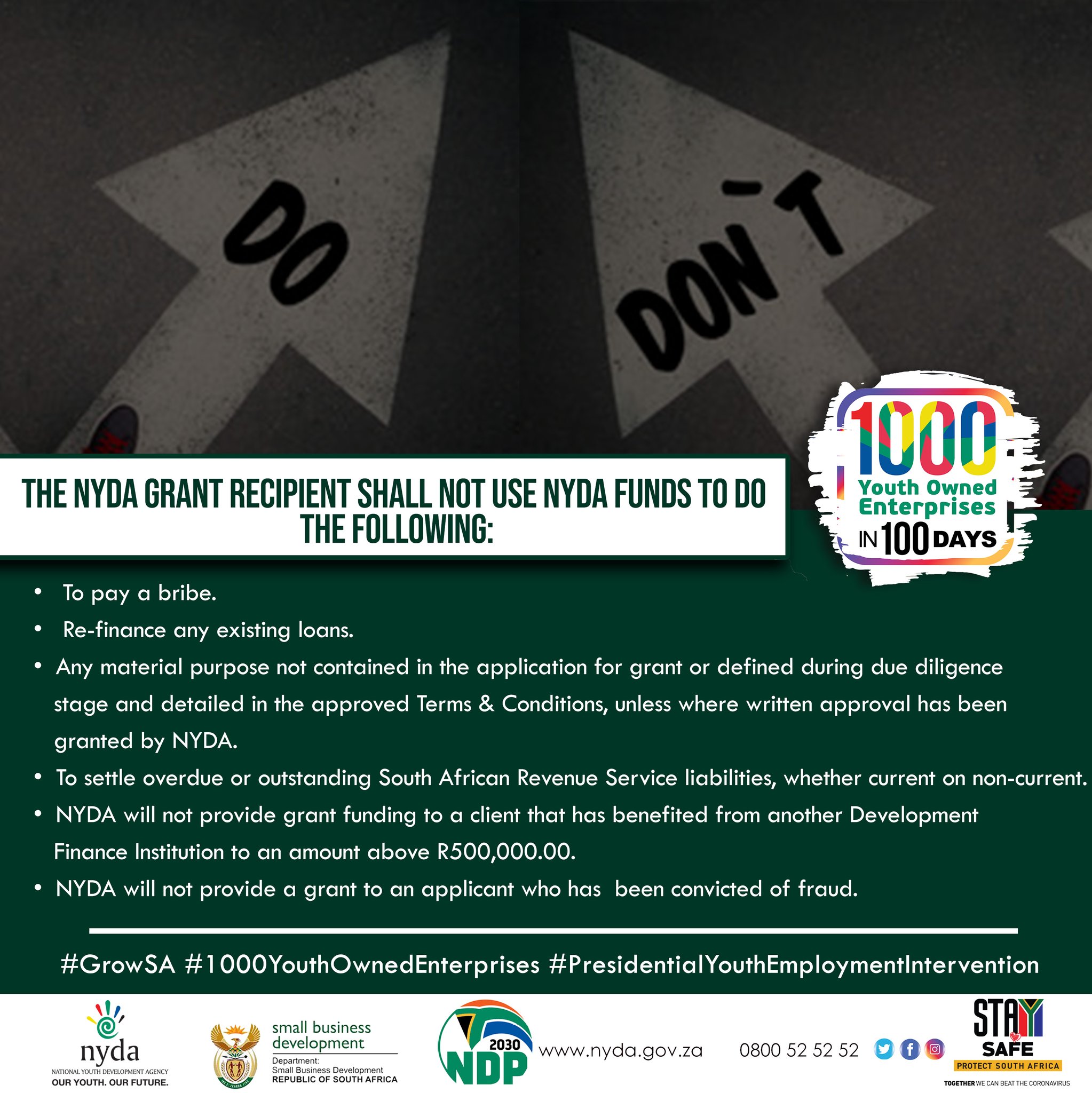 National Youth Development Agency The 1000 Youth Owned Enterprises In A 100 Days Presidential Intervention Is A Grant And Not A Loan Meaning You Do Not Have To Pay It Back Once